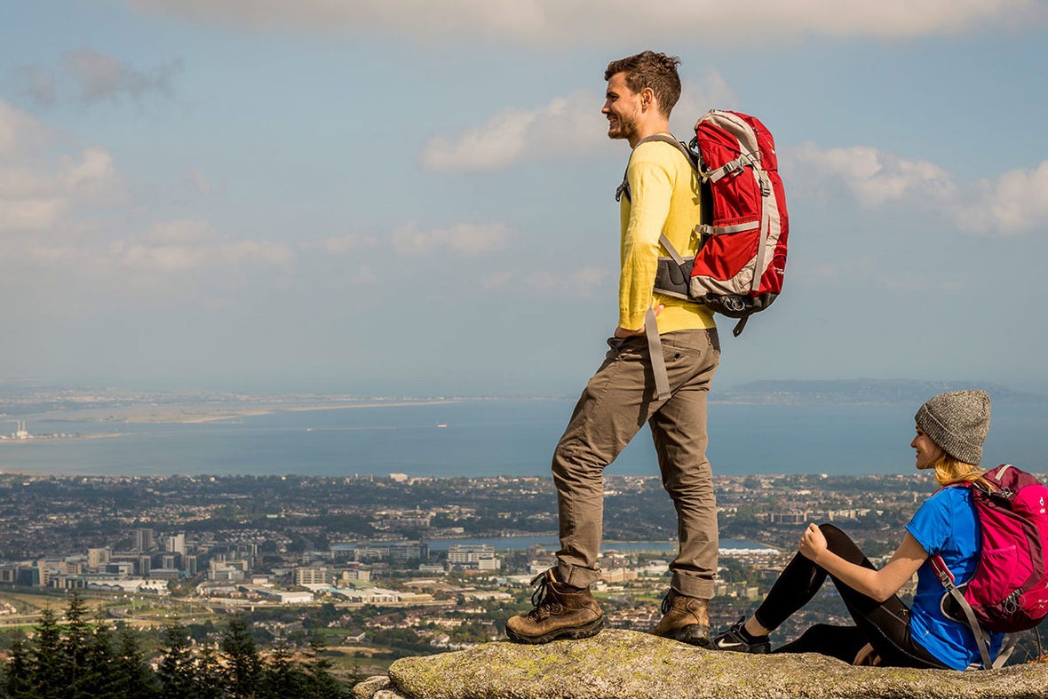 Two people hiking at Three Rock Mountain, Co. Dublin